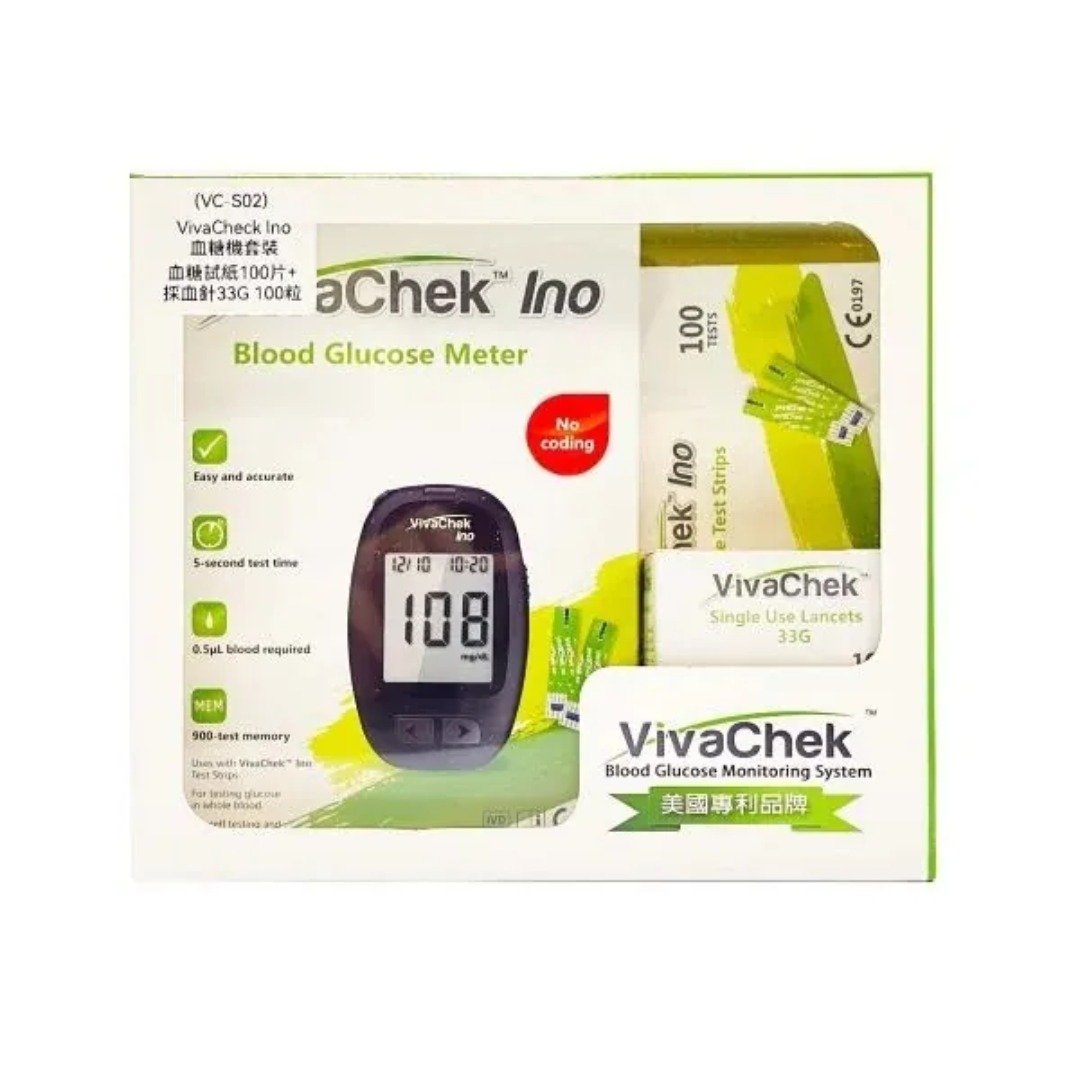 美國微策生物VivaChek Ino 血糖機套裝 (血糖機連採血筆+100片獨立包裝試紙+100枝採血針)