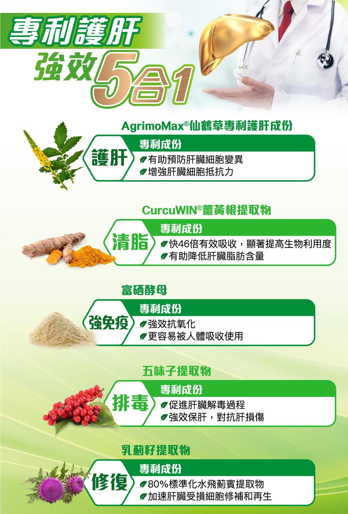 含80%水飛薊賓的高純度乳薊籽提取物,能修復被有害物質損害的肝細胞,促進蛋白質合成作用從而全面加速肝臟細胞修復,並啟動保護機能,強化肝臟,免受毒性物質侵害。