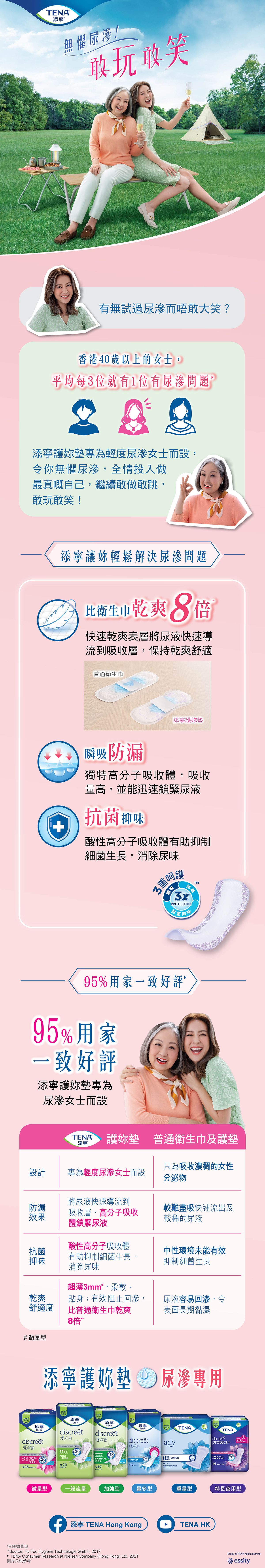 - 添寧護妳墊的三重呵護,比普通衛生巾乾爽,超薄瞬吸,更可以抗菌及消除尿味,超薄、柔軟、貼身