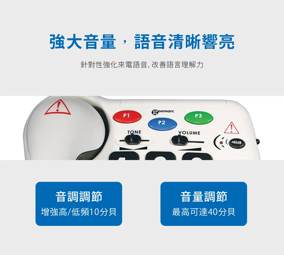 - 鈴聲音量高達80分貝 配合自選功能設定