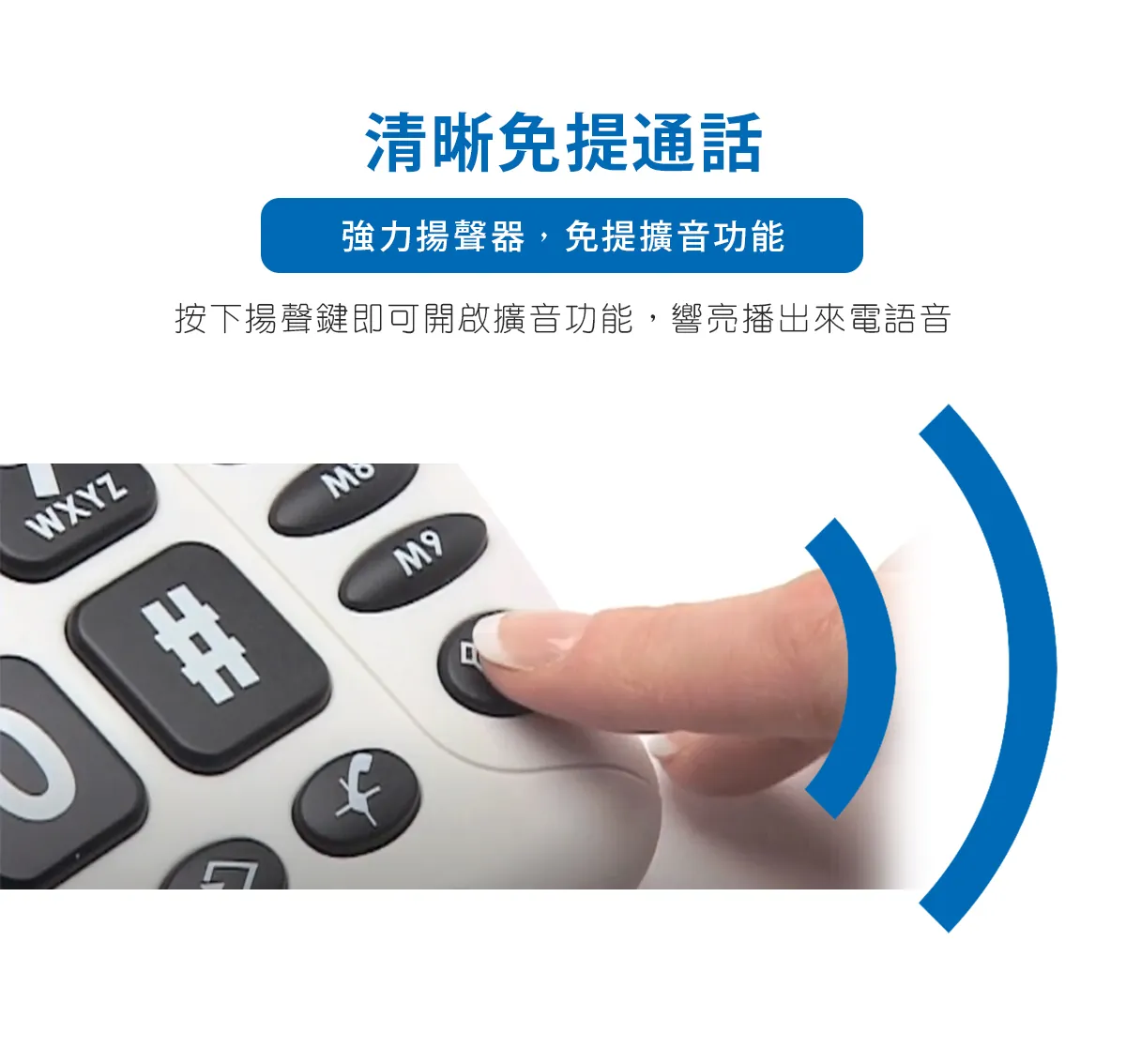 - 按下揚聲鍵即可開啟擴音功能,響亮播出來電語音
