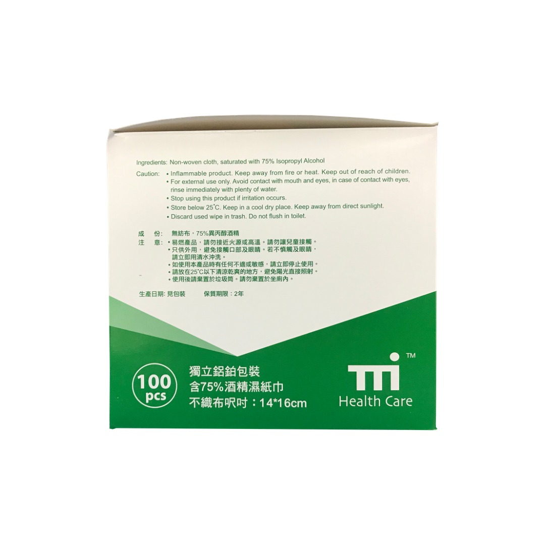 TTI 75% 酒精消毒濕紙巾 100片 獨立包裝