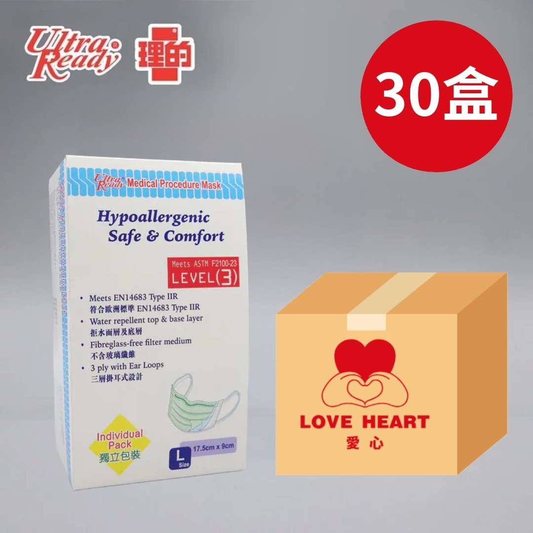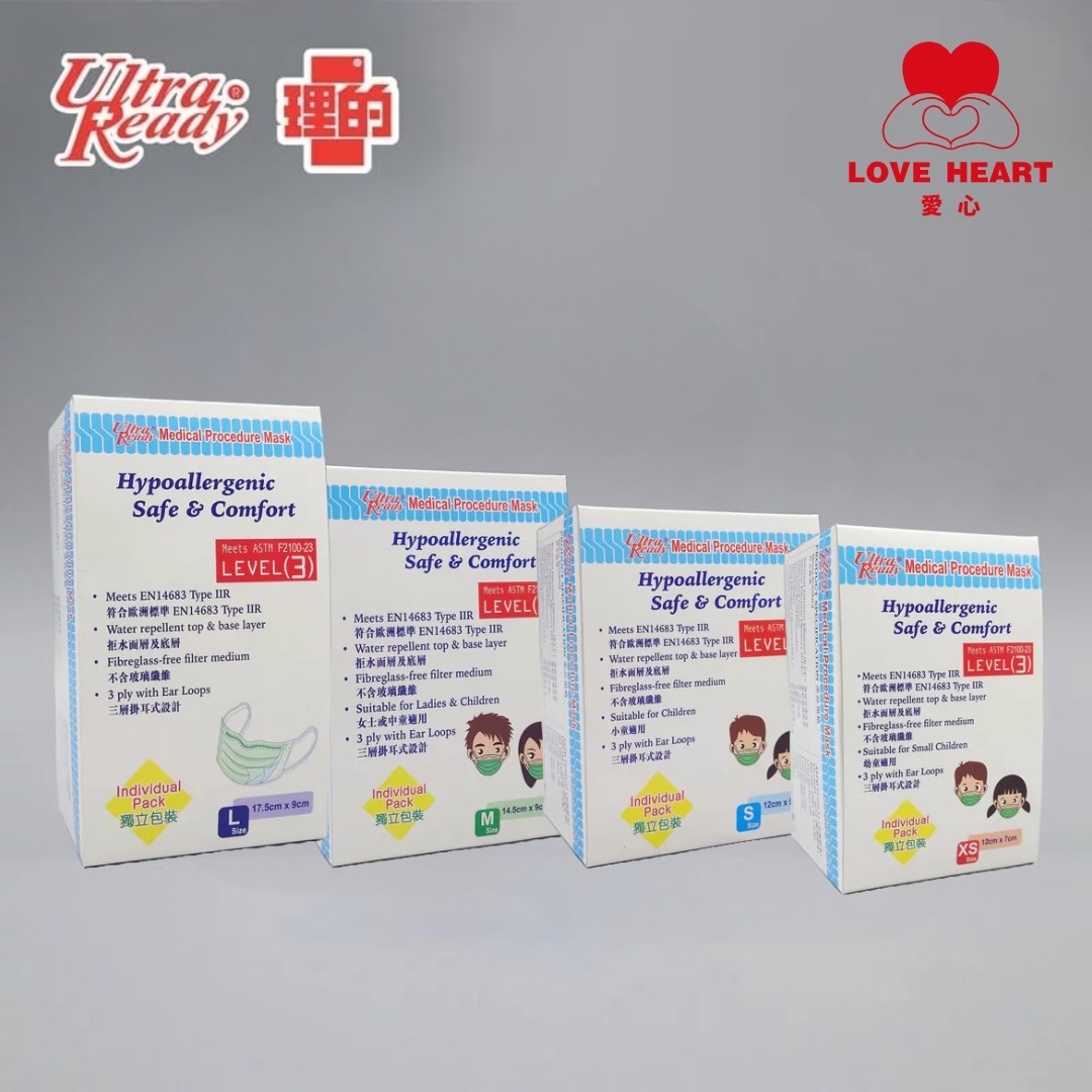 特點獨立包裝符合美國標準 ASTMF2100-23 (Level 3)符合歐洲標準 EN14683 Type IIR生產獲 ISO 9001認證病毒過濾效果≥ 99%符合MRI (磁力共振) 標準拒水面層及底層不含玻璃纖維三層掛耳式設計產品規格 +/- 5%一次性使用 規格大碼(L) / 中碼(M) / 小碼(S) / 加細碼(XS)1盒30片1箱30盒
