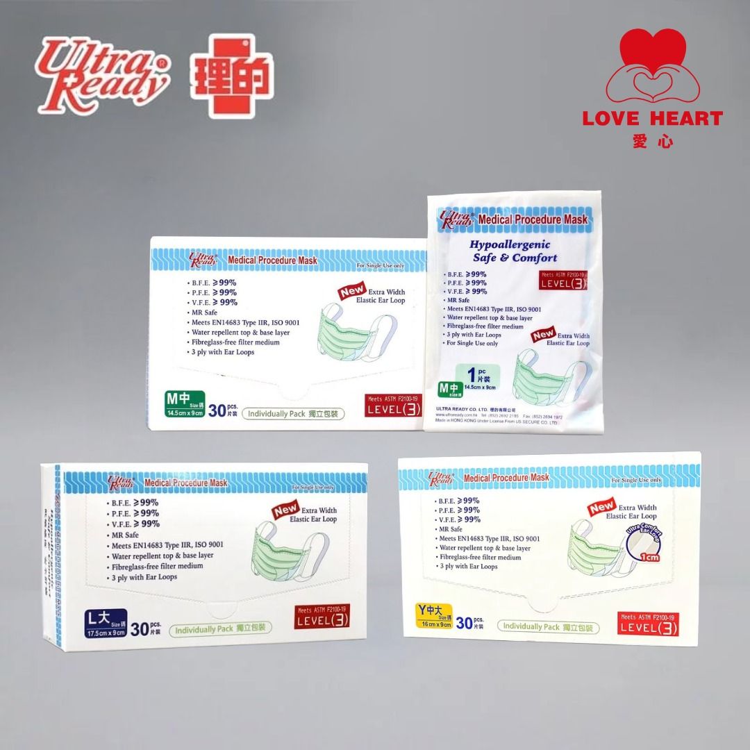 特點獨立包裝加闊耳帶設計符合美國標準 ASTMF2100-19 (Level 3)符合歐洲標準 EN14683Type IIR公司獲 ISO 9001認證細菌、微粒、病毒過濾效果≥ 99%符合MRI (磁力共振) 標準拒水面層及底層不含玻璃纖維三層掛耳式設計產品規格 +/- 5%一次性使用 規格大碼(L) / 中大碼(Y) / 中碼(M)1盒30片1箱30盒