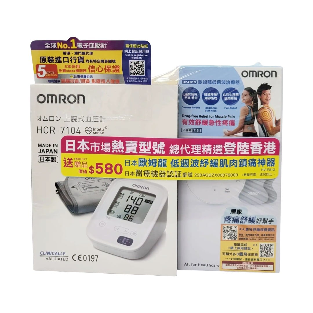 OMRON歐姆龍 HCR-7104 手臂式血壓計 (連贈品 OMRON歐姆龍 HV-F013 低週波治療器)